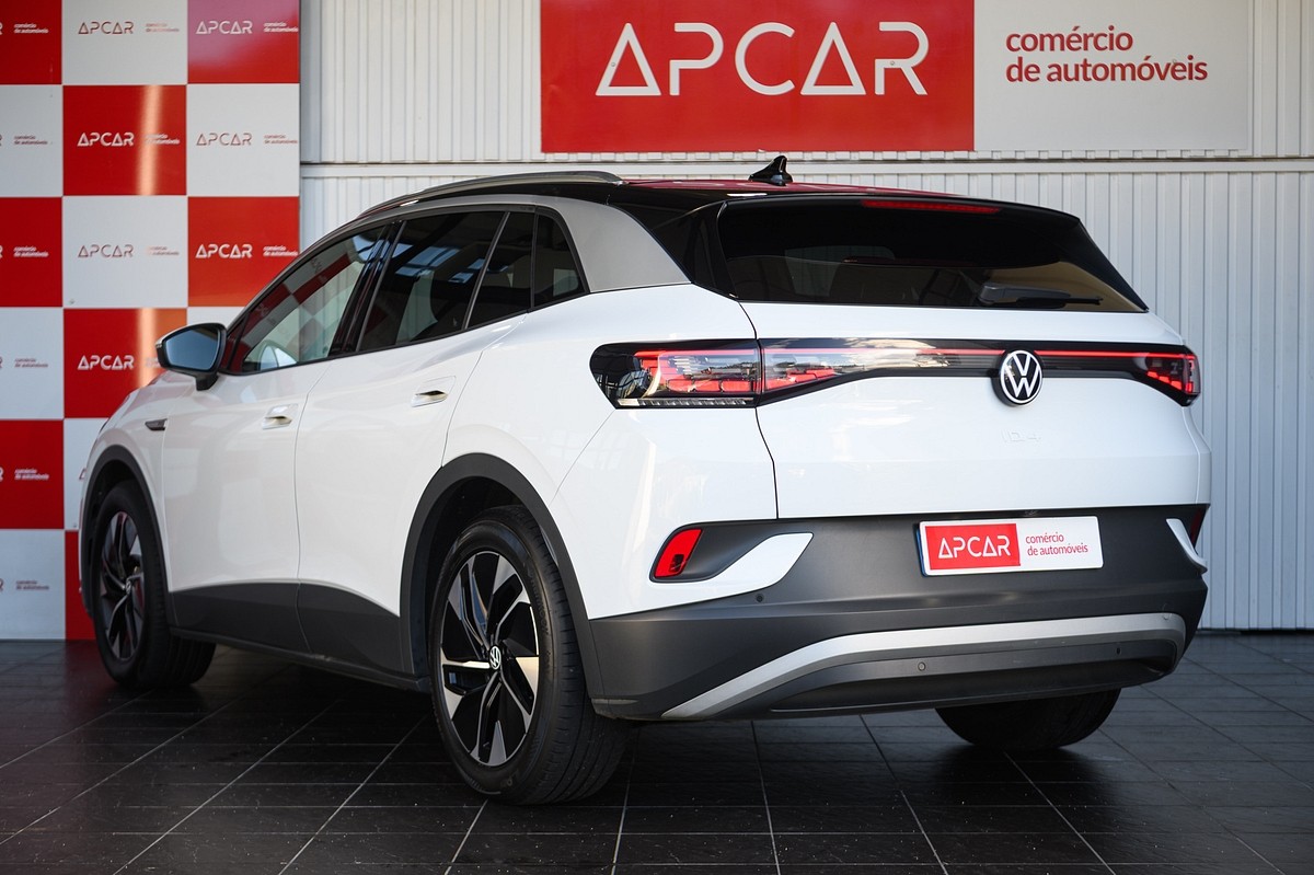 No APCAR, apresentamos este Volkswagen ID.4 2021 com 122661 km, motor Electrico de 204 cv e caixa Automática, . Equipado com Android Auto, Ecrã Consola Central, Ecrã Táctil ou Touch Screen, GPS, USB bancos traseiros e Barras de Tejadilho, oferece conforto, segurança e tecnologia. Garantia de 18 Meses (por mutuo acordo) e financiamento disponível. Esperamos por si em null.<br><br><br> Equipamento:<br><br>Android Auto,Ecrã Consola Central,Ecrã Táctil ou Touch Screen,GPS,USB bancos traseiros,Barras de Tejadilho,Faróis Diurnos,Faróis Diurnos Em Led,Retrovisores c/ Regulação Eléctrica,Vidros Escurecidos,Apoio de Braço,Bancos Dianteiros Aquecidos,Controlo por voz,Mesa Rebativel,Não fumador,Volante com Comandos de Rádio,Volante Multifunções,Airbag de Passageiros,Airbag do Condutor,Alerta Transposição de Linha,Assistente Faixa de Rodagem,Aviso Sinal De Transito,Câmara de Marcha Atrás,Cruise Control,Diferentes Modos de Condução,Direcção Assistida,Fecho Central,ISOFIX,Sensor de estacionamento dianteiro,Sensor de estacionamento traseiro,Sensores de Luzes,Sistema Ajuda ao Arranque em Inclinação,Sistema de Chave Inteligente,Ar Condicionado Automático,Tecto Panorâmico,Vidros Elétricos Diant. e Tras.,Volante Regulável em Altura,Volante Regulável em profundidade<br> Histórico de Manutenções: <br><br>